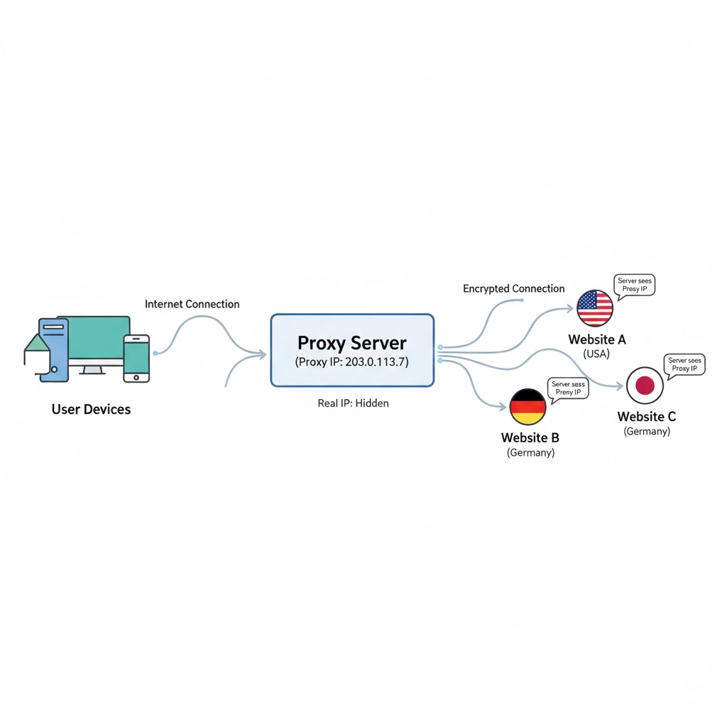 Think of it like using a different name and address when ordering something online, except it’s legal and designed specifically for privacy protection. The website you visit sees the proxy’s information, not yours. Your ISP (Internet Service Provider) sees encrypted traffic heading to a proxy server. And the real you? You’re safely browsing away without exposing your digital fingerprints.